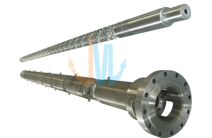Extruder screw barrel Diameter: φ15-φ500 L/D ratio:15-55 Technical Parameter: Hardness After Hardening & Tempering:HB280-320 Nitrided hardness: HV850-1000 Nitrided layer depth:0.50-0.80mm Nitrided brittleness: ≤ Grade Ⅱ Surface roughness: Ra 0.4μm Linearity of screw: 0.015mm Bimetallic layer depth: ≥2mm Bimetallic hardness: HRC60-72 Hard-chrome plating hardness after nitriding: ≥900HV Chrome-plating layer depth: 0.025-0.10mm Product classification: According to different ingredents and products the screw can be chosen: general type, pin type, barrier type, separation type, and gas-exhausting/vented type, etc.