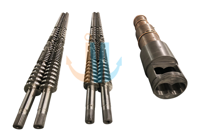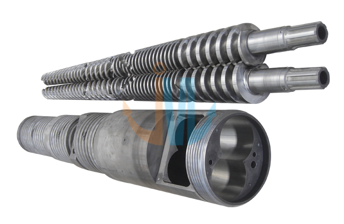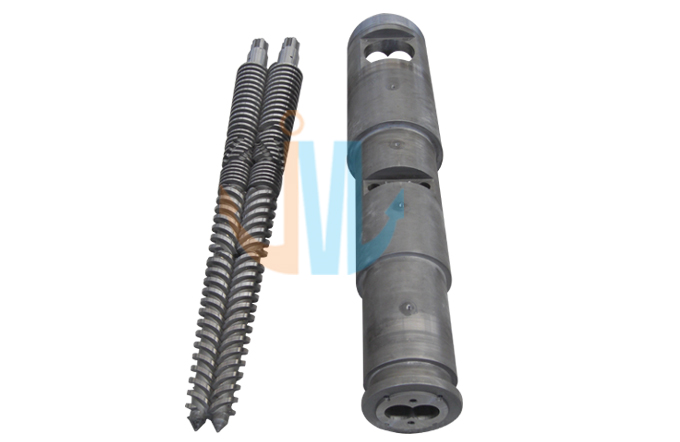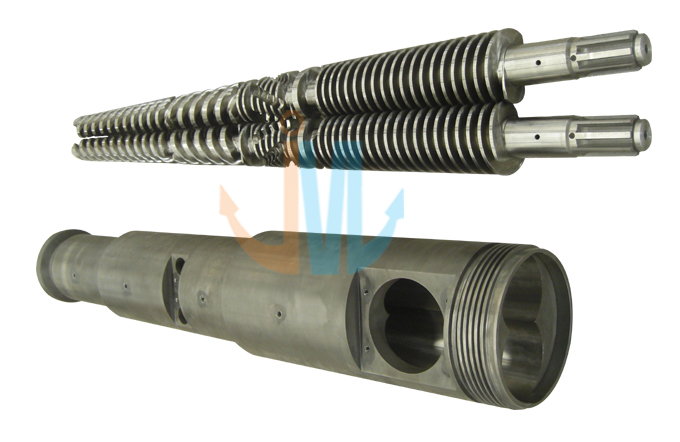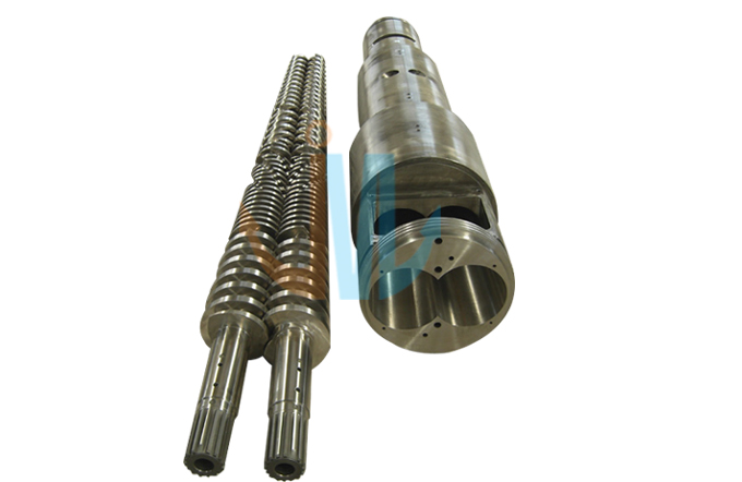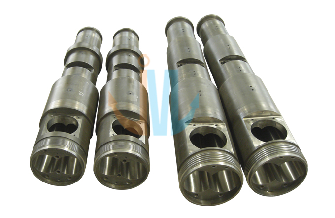 Conical twin screw barrel 45/90, 45/100, 50/105, 51/105, 55/110, 55/120, 58/124, 60/125, 65/120, 65/132, 68/143, 70/135, 70/140, 75/150, 80/143, 80/156, 92/188 The above are standard specifications, we can customize according to customers’ requirements. The compression ratio of screws can be designed according to different products and mixtures. Technical Parameter: Hardness After Hardening & Tempering:HB280-320 Nitrided hardness: HV850-1000 Nitrided layer depth:0.50-0.80mm Nitrided brittleness: ≤ Grade Ⅱ Surface roughness: Ra 0.4μm Linearity of screw: 0.015mm Bimetallic layer depth: ≥2mm Bimetallic hardness: HRC60-72 Hard-chrome plating hardness after nitriding: ≥900HV Chrome-plating layer depth: 0.025-0.10mm |