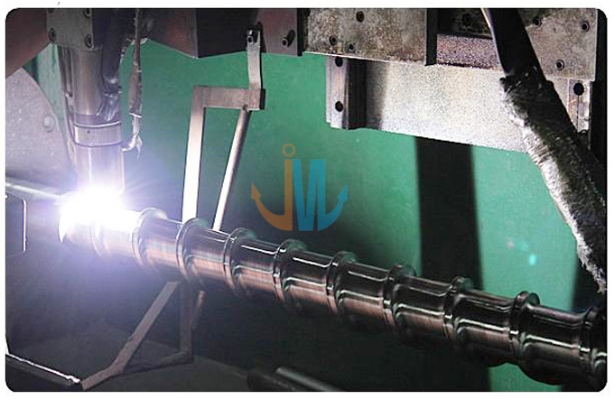 Bimetallic screw for injeciton moulding machine Processing range:inner diameterφ12mm – φ280mm,,the effective length reach 8000mm Grade-A superhard and high wearing resistance bimetallic screw: the base material is imported Sweden Km22 steel and superhard high speed steel, which is high wearing resistance, high toughness and high corrosion resistance, hardness could reach HRC59-64, allying for processing nylon plus 50% ~ 60% glass fiber, bakelite, magnetic powder, ceramic powder, magnesium powder, iron powder, copper powder, aluminum and other special plastic, the service life of 5-8 times longer than the nitrided one. Grade B strong corrosion resistantance bimetallic screw:take base material of improted GRC-276, GE113 ,which is strong temperature resistance and high corrosion resistance, applying for the special plastic which is high speed,high temperature and high wearing and corrosion, nylon plus 20% - 40% fiber glass, halogen-free flame retardant plastic, PPE flame retardant plastic, XPS flame retardant plastic special plastics through solid solution plus aging hardening, the service life of 4-6 times longer than the nitrided one. Grade-C wearing resistance bimetallic screw: take base material of 38 CrMoAla, SKD61, din 1.8550 and1.8519 ,screw flight and bottom cladding alloy powder, the surface hardness can be reach HRC60 ~ 62, the thichkness of alloy layer is 1 mm - 2.5 mm, with extremely high wear resistance and corrosion resistance, applicable to PC, PE, PVC and other plastic processing. bimetallic screw for PC only:take base material of special stainless steel, 42 CrMo, then hardening and chroming ,suitable for processing transparent plastic products, such as lens, white material, back plate, guide plate, acrylic products, the service life is 3-5 times longer than the nitrided one .